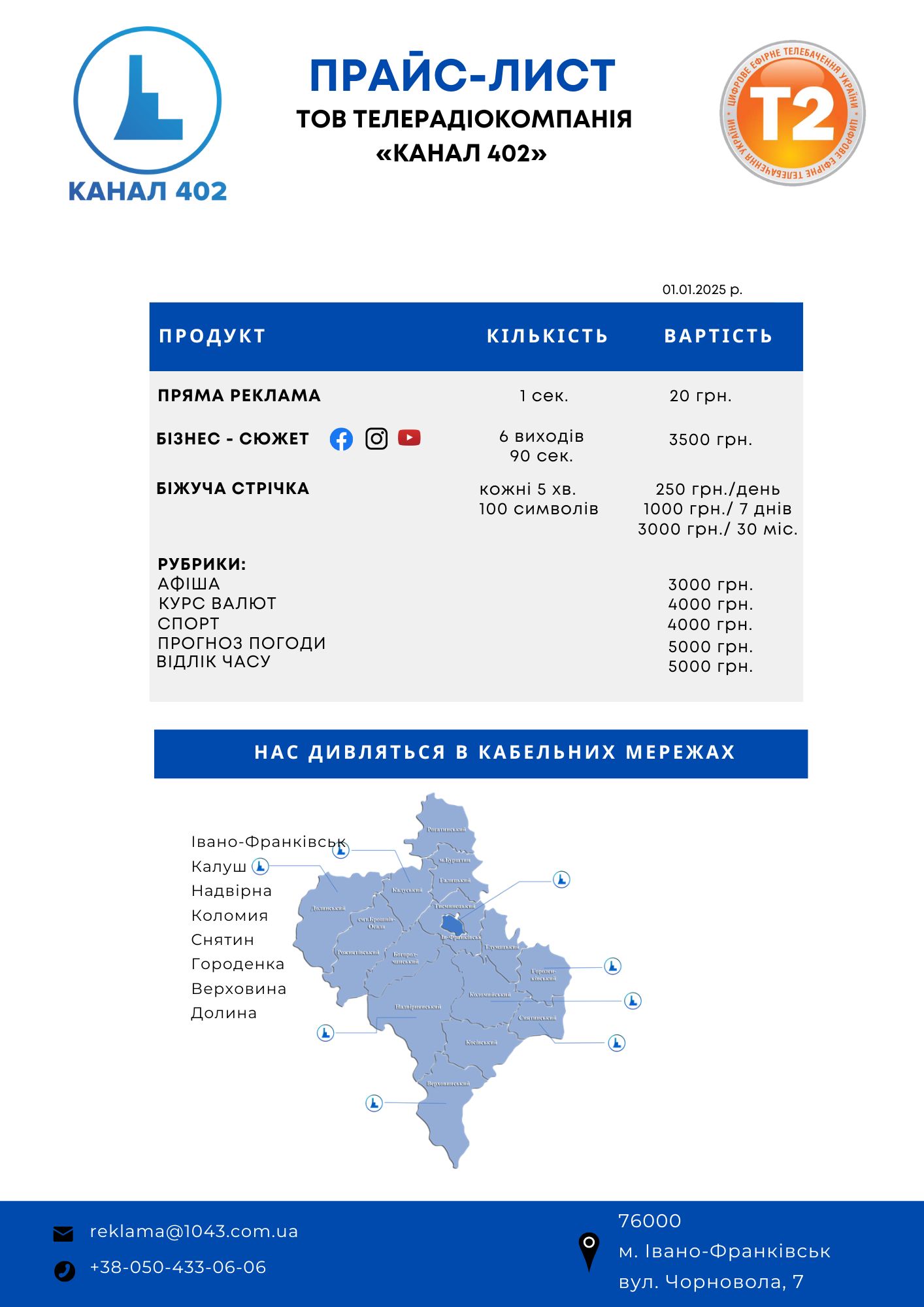• Івано-Франківськ і район (104,3 МГц );